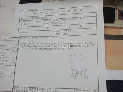 本校からは科学論文の部に10点、科学工夫作品の部に3点が出品されました。その中から、科学論文の部に出品した林優樹さん(1年)の「アオドウガネの色覚と臭覚の研究~アオドウガネが好む色と香りは何か?~」と、同じく科学論文、工藤漣さん(1年)の「ゼミの本当に好きな木を探せ!と流山市のクマゼミ調査5」、さらに工夫工作の栗原陽樹さん(2年)の「自動卓球球出し機」が見事最優秀賞に輝き、10月18日(土)と19日(日)に千葉県総合教育センターで行われる「千葉県児童生徒・教職員科学作品展」に出品されることになりました!!