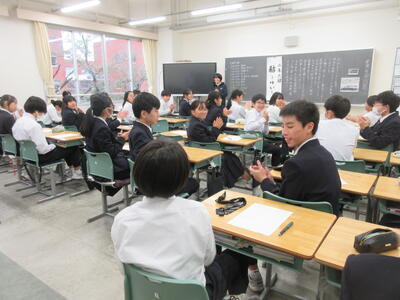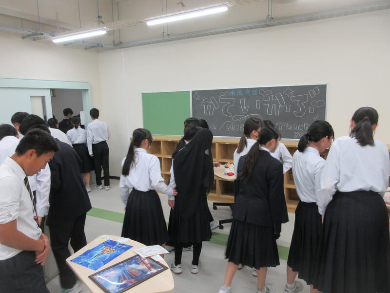 南風祭2日目、午前の部が終了し、学級の時間。担任の先生方から南風祭での子ども達の頑張りが伝えられ、温かい拍手が送られています。この後は、コンピュータ部、美術部、家庭科部の展示見学の時間。子ども達が部活動の時間に一生懸命に取り組んだ成果が発表されます。