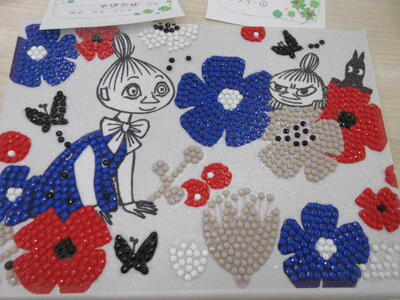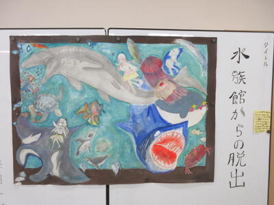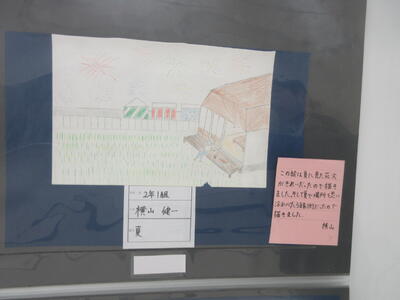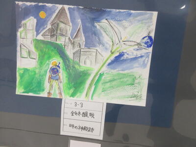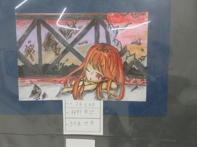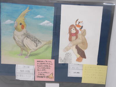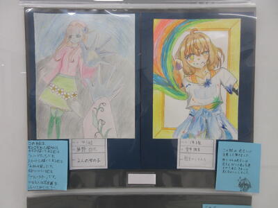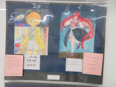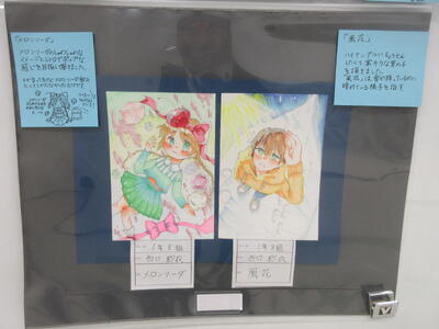 ▼美術部。子ども達が丁寧に仕上げたイラストや絵画、デザインの数々が展示されています。子ども達の創造性あふれる作品は本当に見事です!!