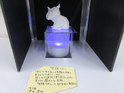 ▼美術部は南流中版「アートの卵展」を開催。未来の芸術家達の見事な作品が展示されています。中には本物の芸術家、顧問の石原重人先生の作品も。光の当て方、展示の方法で雰囲気もガラッと変わります。