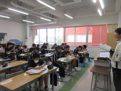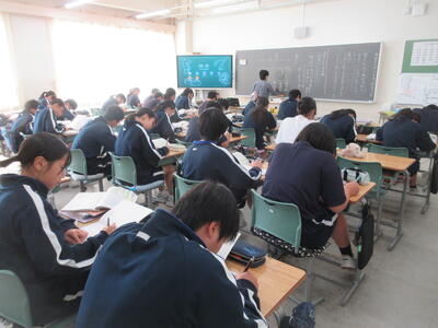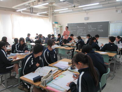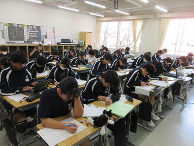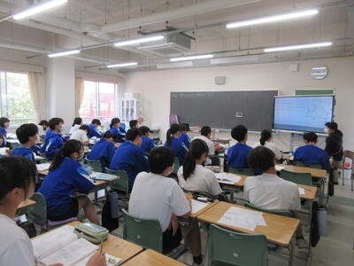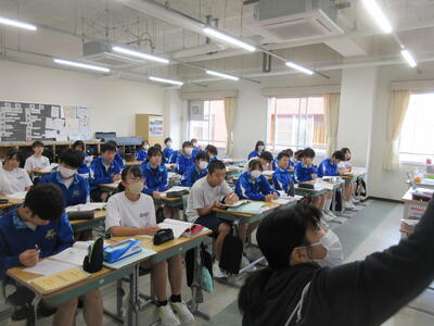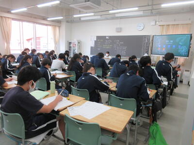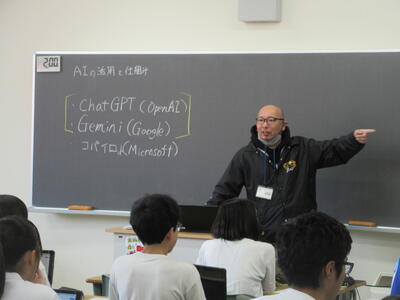 ▼3年生技術科の授業の様子。AIの活用と仕組みについての授業が行われています。AI活用のメリットとデメリットを理解することは必須。AIを正しく活用し、その出力を吟味し、誤情報を見抜く力を養う必要があります。そのための授業が早速学校でも。時代は進化していますね。