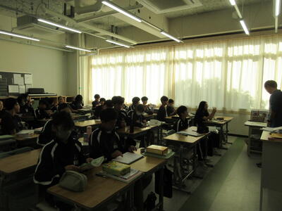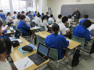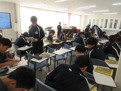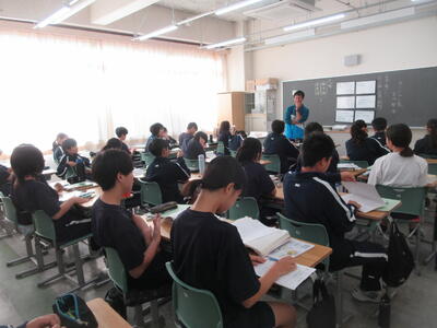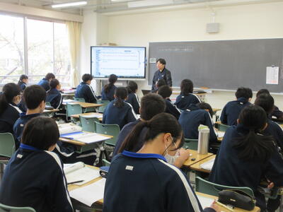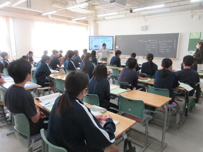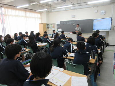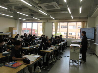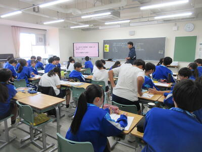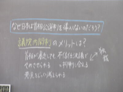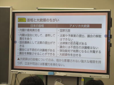 ▼3年生社会科公民の授業。「なぜ日本は首相公選制を実施しないのだろう?」という学習課題が提示されました。首相と大統領のちがいが提示され、政治体制の違いまで深掘りすることになります。