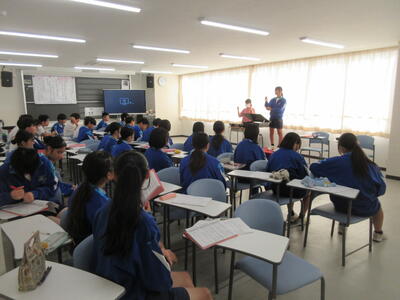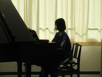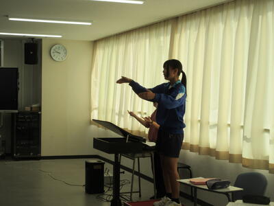 ▼音楽室での合唱練習の様子。素晴らしい歌声が響き渡ります。