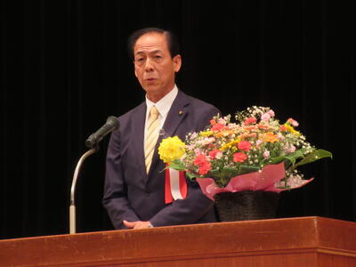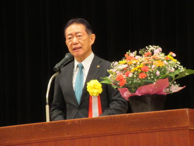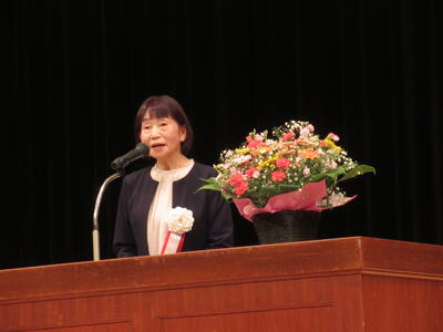 その後、樫村あい子会長からのご挨拶に続き、井崎義治流山市長を始めとする来賓の方々からお祝いの言葉。アトラクションとして、先日の「流山市青少年の主張大会」で最優秀賞を受賞した東深井中と流山高校の生徒による見事な発表、そして流山北小学校吹奏楽部の堂々とした演奏も披露され、大会を大いに盛り上げました。