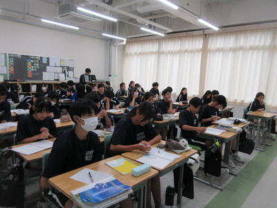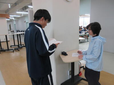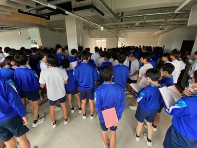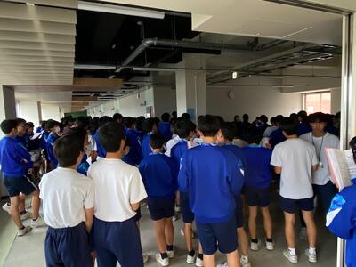 ▼昼休み、A棟3階のコミュニケーションスペースの方から、「Let's Search for Tomorrow」を歌う3年生の合唱が聞こえてきました。ものすごい迫力!!2階からもびんびん響いてきます!! 3年生すごいです!!