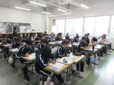 秋の深まりを感じさせる今朝の南流中。先週末までとは一転、急激に寒さを感じるようになりましたが、子ども達には規則正しい生活、栄養、睡眠に気を配り、健康に十分注意してほしいところです。保護者の皆様方には、昨日の給食室内でのトラブルにより、早朝からのお弁当作りに大変なご協力を頂戴いたしました。本当にありがとうございました。