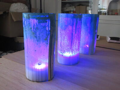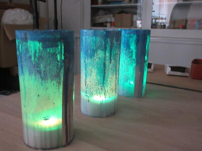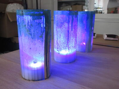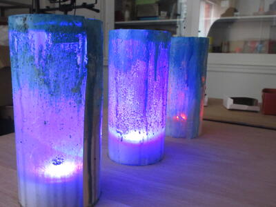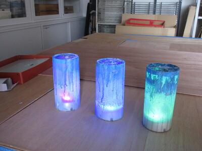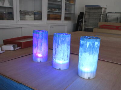 ▼3年生も作ることになるテーブルライト。周りの模様の変化で様々な表情を見せてくれます。3年生が、世界で一つだけの、自分だけのテーブルライトを作るのがとっても楽しみですね。