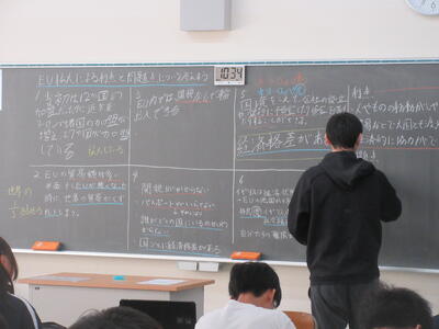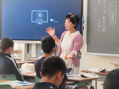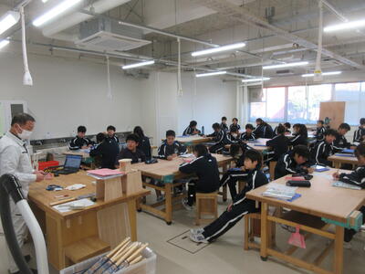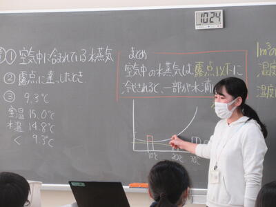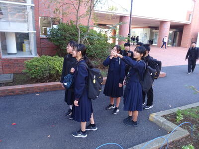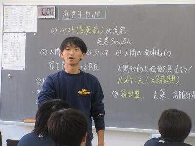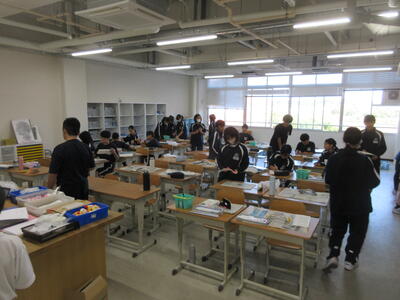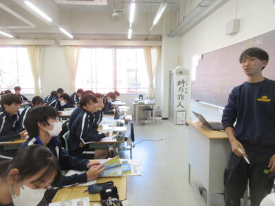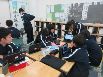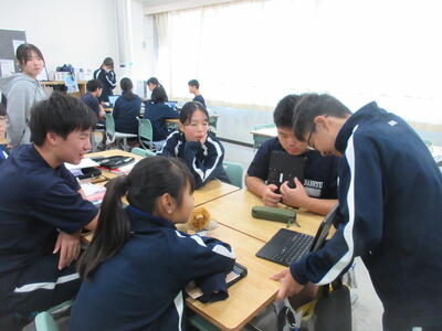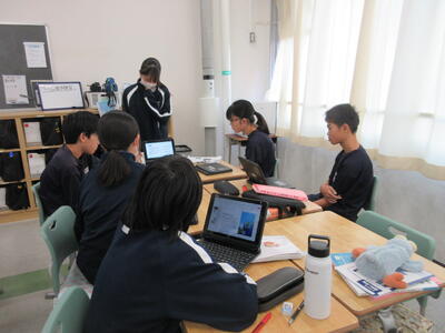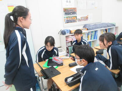 ▼1年生の理科の授業。夏休み中の自由研究で自分が調べた内容をパワポにまとめ、グループの中で発表を行っています。ここでもプレゼンで鍛えられた能力が生かされています。