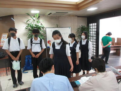 修学旅行2日目の午後は京都市内の班別行動。全班無事に「お宿いしちょう」に戻ってきてくれました。