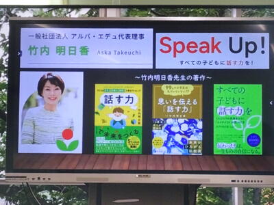 竹内先生は、『すべての子どもに「話す力」を』をモットーに、全国の子ども達にプレゼン授業を行っている「アルバ・エデュ」というグループの代表を務めており、これまでに全国約67,000人の子ども達や学校の先生にプレゼンの大切さやコツをアドバイスしている、プレゼン教育の第一人者です!