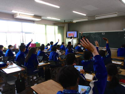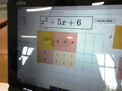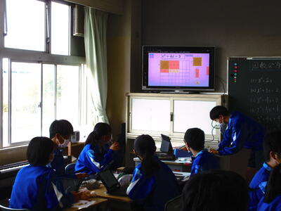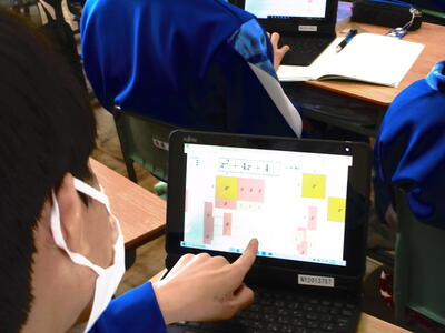 1校時の教室を見回るとICTを活用した数学の授業が2クラス。どちらも子ども達はタブレット端末を上手に使いこなしながら課題に向き合います。