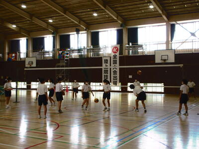 一方体育館ではバレーボールのスパイク練習。また、格技場ではひまわり学級の風船バレーボールのゲーム。どちらも子ども達の歓声が響き渡っています。