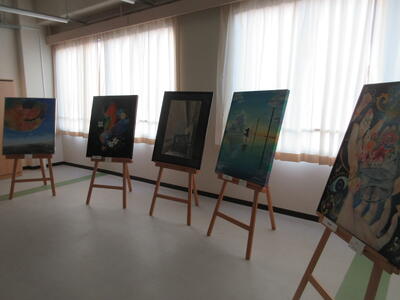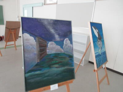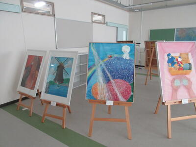 ▼C棟3階の美術部、家庭科部、コンピュータ部の展示場所。徐々に発表作業が進んでいます。