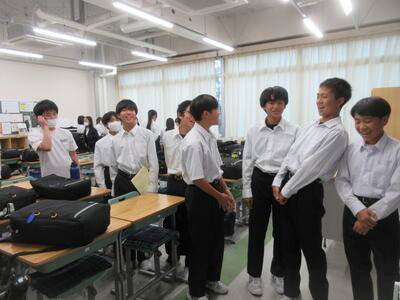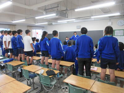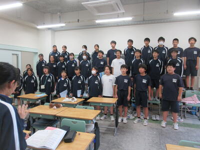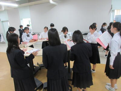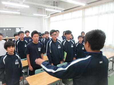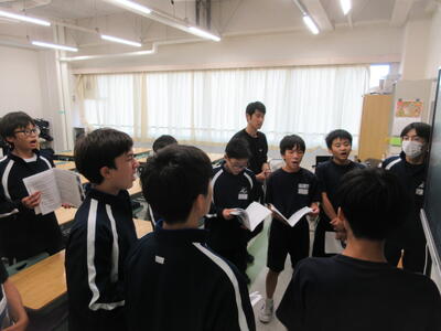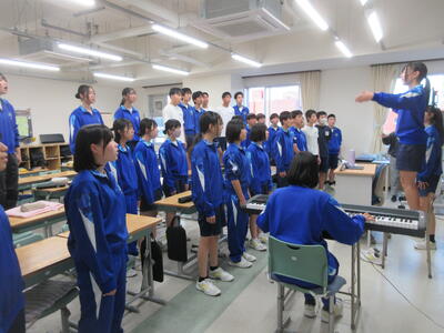 ▼帰りの会の時間に各クラスを回ると、どこも合唱練習が行われています。体育祭に続く、2学期の大きな行事の一つ「南風祭」まで残り2日。 どの学級も、このメンバーで臨む最初で最後の「南風祭」に、全力で追い込みをかけています。