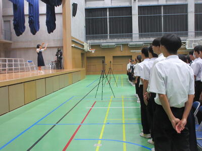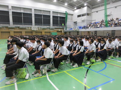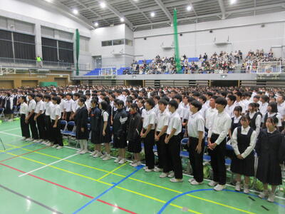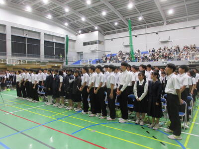 本日、第2体育館にて「南風祭」1日目、合唱の部が行われました。800人以上が集まっているにもかかわらず、開会式は高まる緊張感で静まりかえった雰囲気。これまで頑張ってきた成果を発揮する瞬間が迫ってきました。