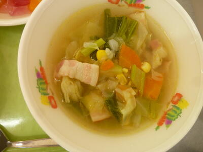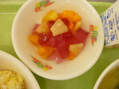 今日のメニューはとっても色鮮やかでした!!まず、見た目で明るく幸せな気持ちにさせてくれる給食に感謝します。特に食欲がない時は、キーマカレーのような辛みのある味付けや、さっぱりした透明な野菜スープ、甘いフルーツのぶどうゼリーあえは最高の組み合わせです!!キーマカレーは、辛さの中にもマイルド感があり、ライスがとっても進みました。野菜スープは、優しい味で具材もやわらかく、スープをたくさん飲むことができました。デザートは、最近ゼリーを食べていなかったせいか、キラキラした見た目と甘い味覚に大満足でした。今日も、栄養教諭の先生、調理員の皆さん、おいしい給食を作ってくださりありがとうございました。