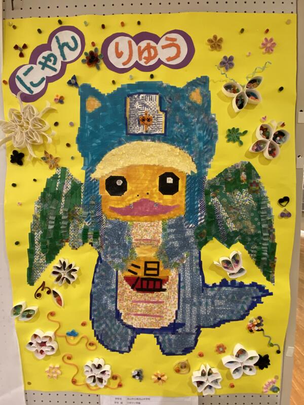 ▼会場の入口では、本校ひまわり学級の子ども達が共同で作成した、南流中公式キャラクター「にゃんりゅう」(作品名:にゃんりゅうの夢は花開く)が温か~くお出迎え!!