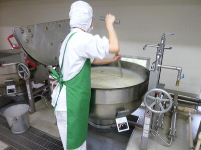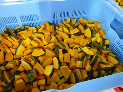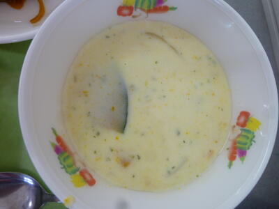 今日はかぼちゃを使ったクリームシチューです。かぼちゃの甘味を味わいながら食べましょう。