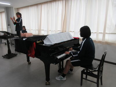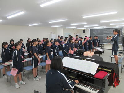 ▼第1音楽室での音楽の授業。南風祭で披露する合唱曲の練習が行われていました。どの子の表情も真剣そのもの。みんなで最高の合唱をつくるんだという意気込みがこちらにも伝わってきます。
