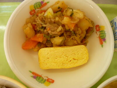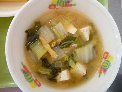 「ねぎすきじゃがは」は、甘みの感じられるねぎとじゃがいものコクが相まって、箸が次々と「ねぎすき」に吸い込まれるように止まらなくなる一品でした。お隣に添えられた厚焼き玉子がベストポジションで、とても食べやすかったです。「白菜と油揚げのみそ汁」は、白菜がたっぷり入っているみそ汁で、食べ応え抜群のメニューでした。今週もおいしい給食を作ってくださった栄養教諭の先生、調理員の皆さん、ごちそうさまでした!!そして、ありがとうございました!!