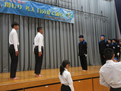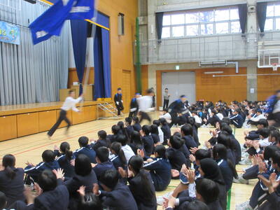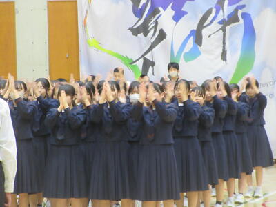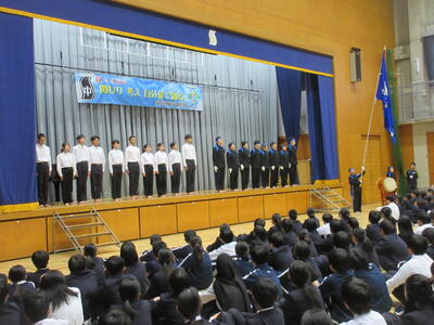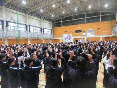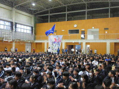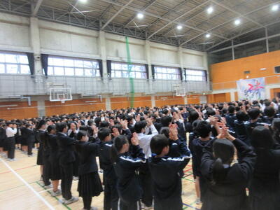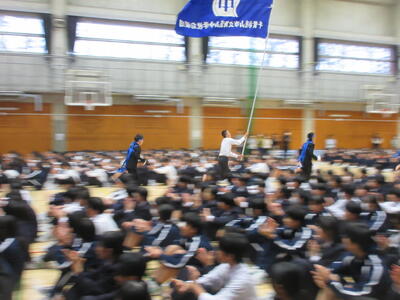 本日5校時終了後、第1体育館にて全校応援団の「引き継ぎ式」が行われました。