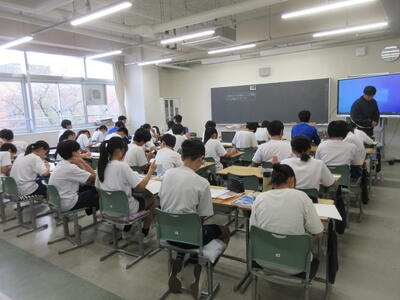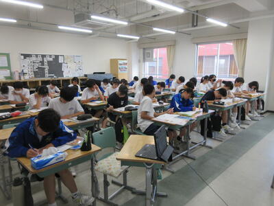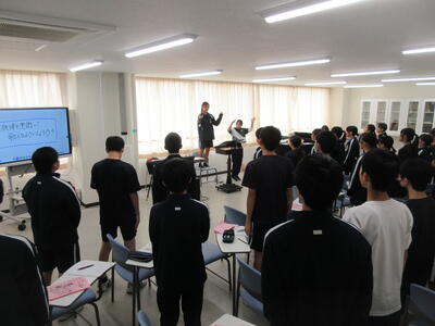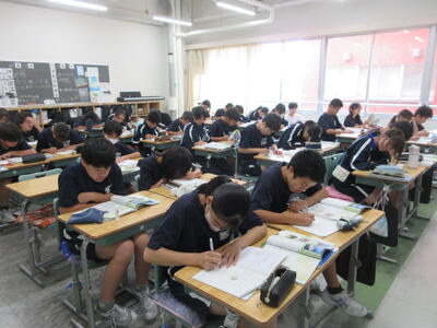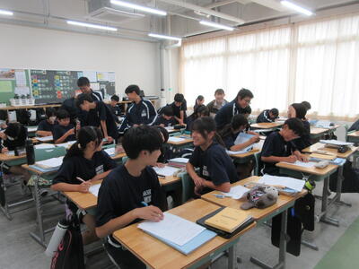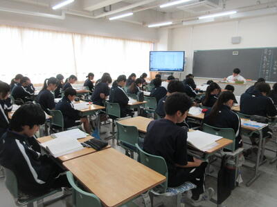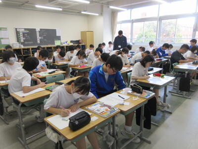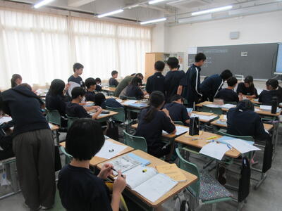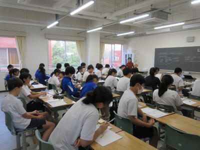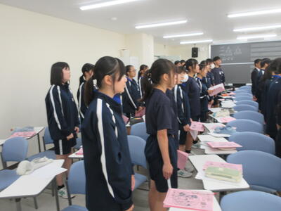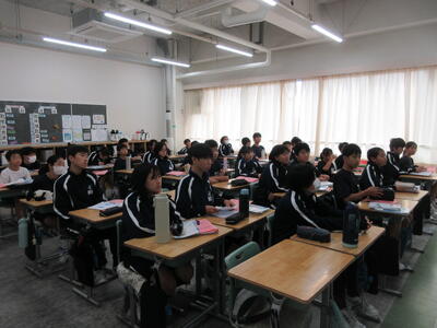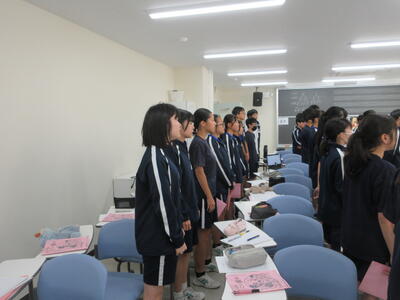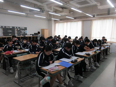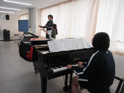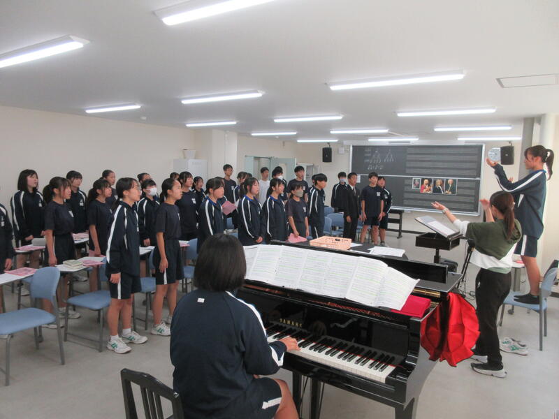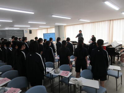 ▼第2音楽室から素晴らしい合唱が聞こえてきます。2年3組の「いつかこの涙が」の感動的な歌声。全国高校サッカー選手権大会の応援ソングであったこの歌ですが、子ども達が歌う澄んだ歌声が心に染みます。
