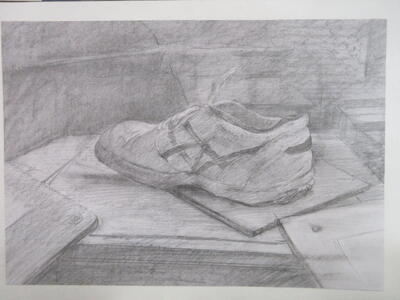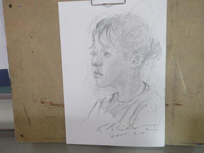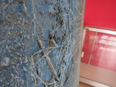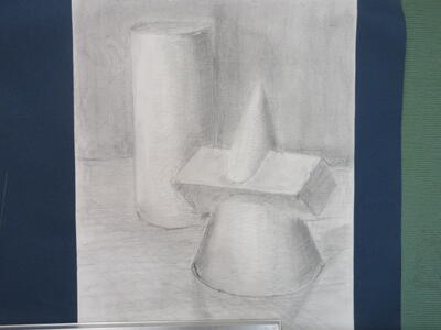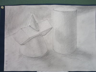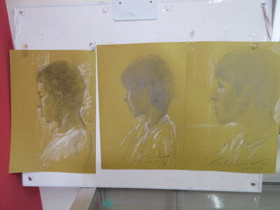 ▼美術室の展示スペース。素敵な絵やデザインが一杯です。