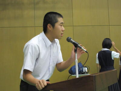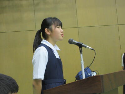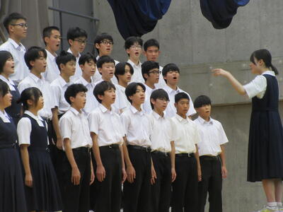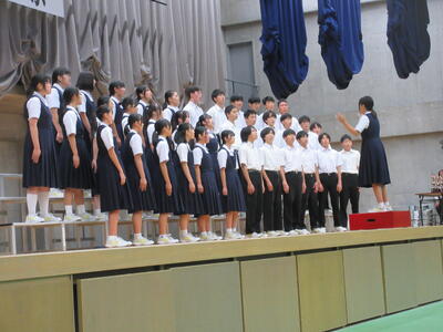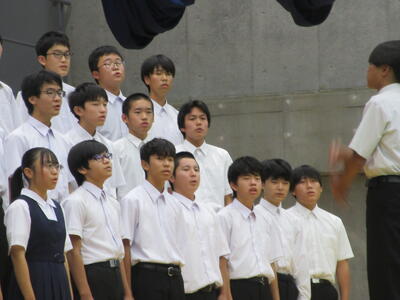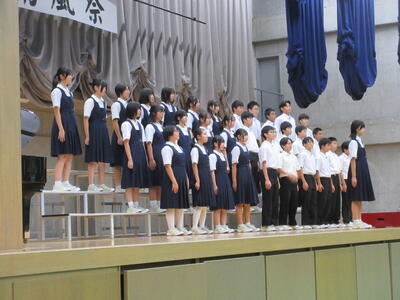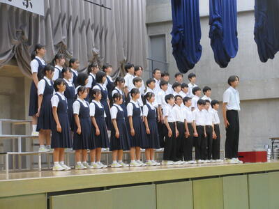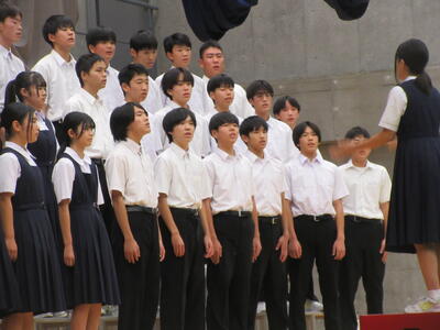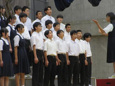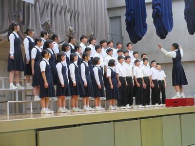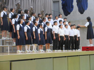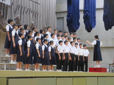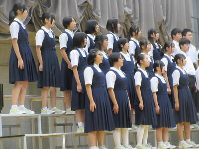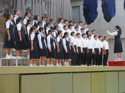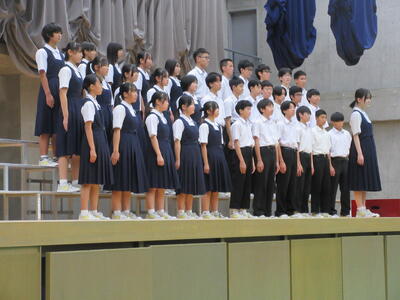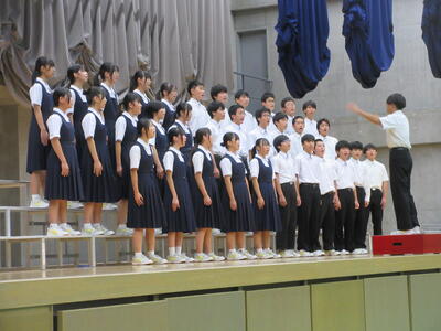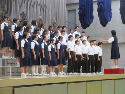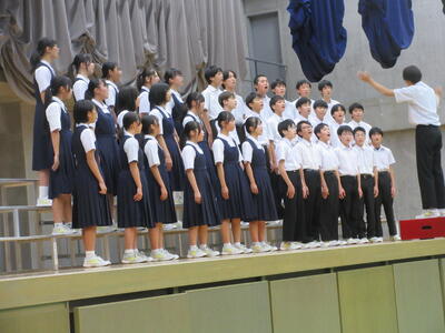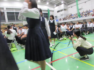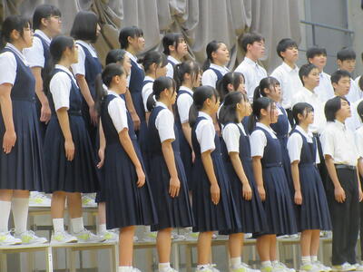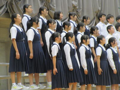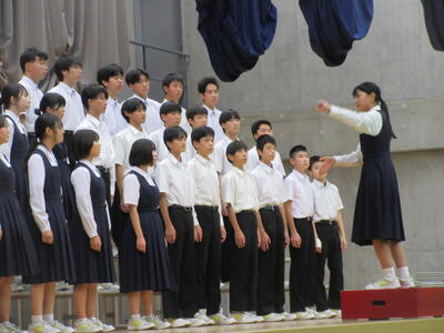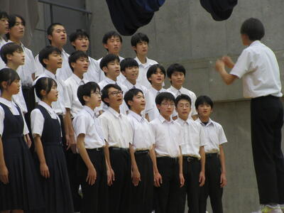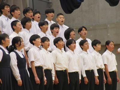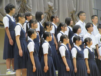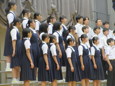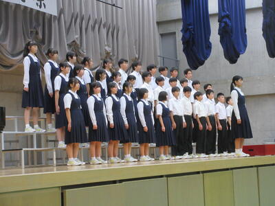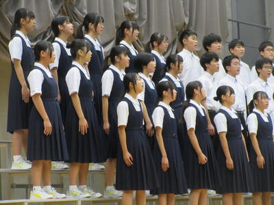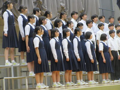 給食を挟んで、合唱の部の最後に登場するのは、もちろん3年生。この場で行う最後の合唱コンクールにかける思いは並々ならぬものがあります。これまで南流中をリードしてきた3年生の気迫あふれる歌声が、第2体育館中に響き渡ります。