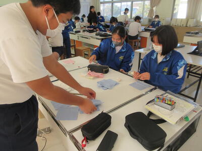 3年生の技術科では、タブレット端末を活用し、プログラミング学習用教材toioでの学習が行われています。白く四角いおもちゃが、自分の命令通りに動くことでプログラミングの基本を学んでいきます。