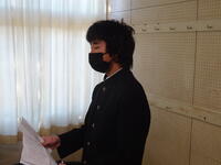 〇本日、2学期最後の日となりました。今回の終業式も感染症対策としてテレビ中継にて行いました。各学年ならびに生徒会執行部代表たちは、2学期を振り返っての成果と課題、今後のめあてをしっかりと述べました。生徒指導担当者からは、「思いを伝えることの大切さと難しさ」から、SNS、スマホの使用について心がけなければいけないことを話させていただきました。学級の時間では、担任が一人ひとりに励ましの言葉をかけながら通知表を手渡ししました。
