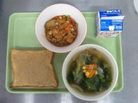 献立:セサミトースト・チリコンカン・レタスのスープ・牛乳
