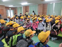 全員で校外学習のめあてを大きな声で音読しました。一人ひとりがしおりを見なくても、めあてを覚えていて、元気に言うことができました。荒井先生や校長先生のお話しも真剣な態度で聞くことができました。