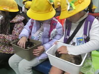 お昼ごはんの後は、「ふれあい動物の森」でうさぎやモルモットとふれあいました。