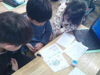 国語では、身近な体験をもとに感じたことを言葉にし、自分の思いを相手に伝える力を育てることを大切にしています。子どもたちは、生き物を通して「見る」「考える」「伝える」楽しさを味わいながら、言葉で表現する力を少しずつ伸ばしています。