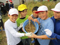 初めて鎌を使う児童も多く、最初は少し緊張した様子でしたが、次第に慣れて笑顔で作業に取り組みました。