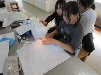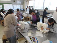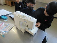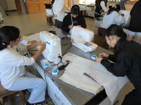 6年生では、家庭科で「ナップザック製作」の学習に取り組んでいました。