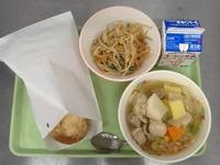 献立:きなこ揚げパン・肉とやさいのごまドレッシング・ポトフ・牛乳