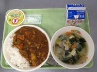 献立:ポークカレーライス・わかめスープ・お米のムース・牛乳