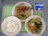 今日は、どれも人気のメニューです。最も残菜の少ない献立のひとつかもしれません。「ラーメンがおいしい。」「とり肉の揚げてあるのが好き。」とおかわりし、食缶が空になったクラスが多かったです。