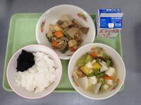 献立:ごはん・のりのつくだ煮・いりどり・かぶのみそ汁・牛乳