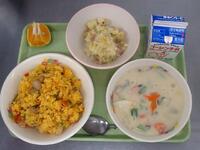 献立:キャロットピラフ・バターポテト・チーバくんシチュー・早香・牛乳