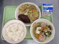 さばの韓国風みそ煮は、にんにくとテンメンジャンが入ったいつもとは一味違った韓国風のみそ煮です。薬味をたっぷり使って丁寧に煮ました。今日は、お休みの児童がとても多く、全体的に残ってしまいました。しっかり食べてかぜに負けないからだを作りましょう。