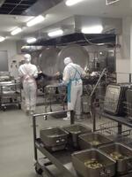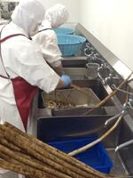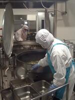 今日は、60kg近くの里芋を使いました。給食室では、3時間かけて丁寧に皮をむき一口大の角切りにしてくださいました。その後、素揚げして甘みそで絡めます。教室では、最初減らしていても食べてみるとおいしくておかわりしている姿が見られました。また、今日は炊き込みのまいたけごはんです。炊き上がりは香り良く、釜底にはおこげができておいしく仕上がりました。