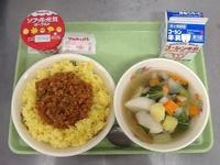 献立:サフランライスのミートソースかけ・塩豚スープ・ヨーグルト