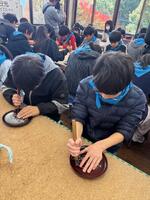 楽器の体験では、初めて触れる箏に慎重に弦を弾く子どもたちも弾き終わると嬉しそうな表情をしていました。