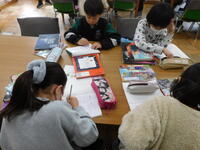 今日は、2組の子どもたちが図書室で自分の決めたテーマに沿った本を探していました。