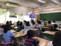 教室のテレビを見ながら、どのクラスも真剣に話を聞いていました。