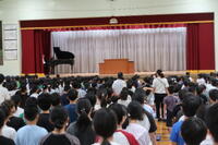 終業式では夏休みの過ごし方についての話があり、子ども達は真剣に聞いていました。