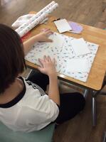 「なつと ともだち」の単元のまとめとして、うちわづくりをしました。