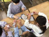 どんぐりや松ぼっくりなどを使ったあきのおもちゃ作りをしています。